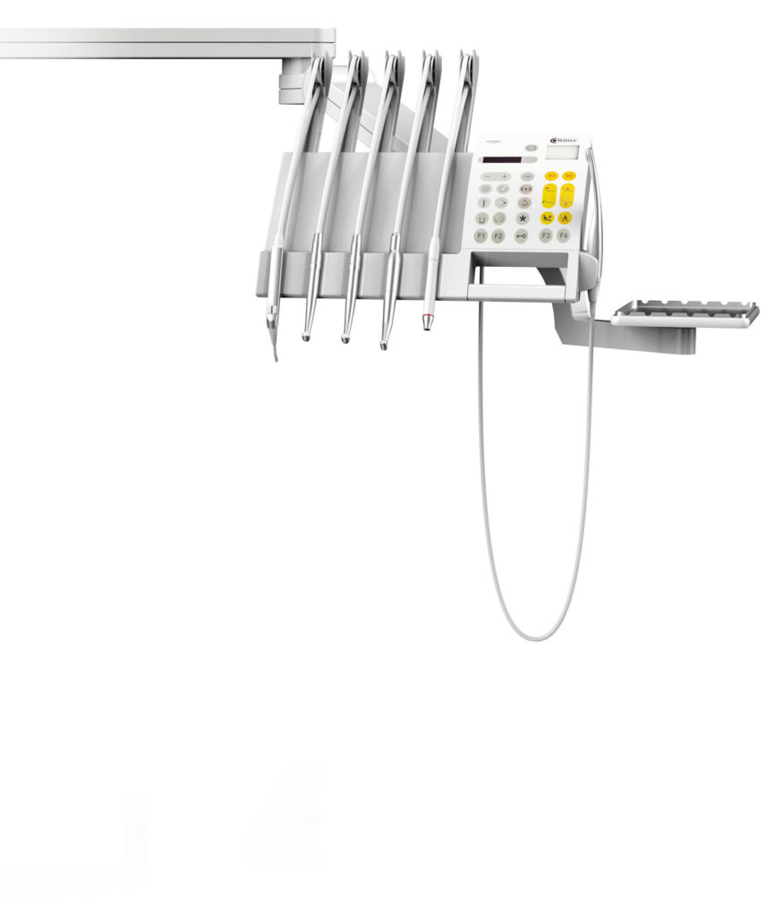 The 2-part instrument arm of the assistant element allows flexible positioning in any patient position and treatment situation. All main functions of the treatment unit can be controlled with the membrane keypad integrated flush with the surface of the articulated arm.